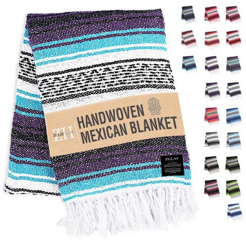 Zulay Home Hand Woven Mexican Blankets 71 X 47 Artisanal Boho Falsa Blanket For Yoga Outdoor Car Beach Picnic Camping Purple Blue Target